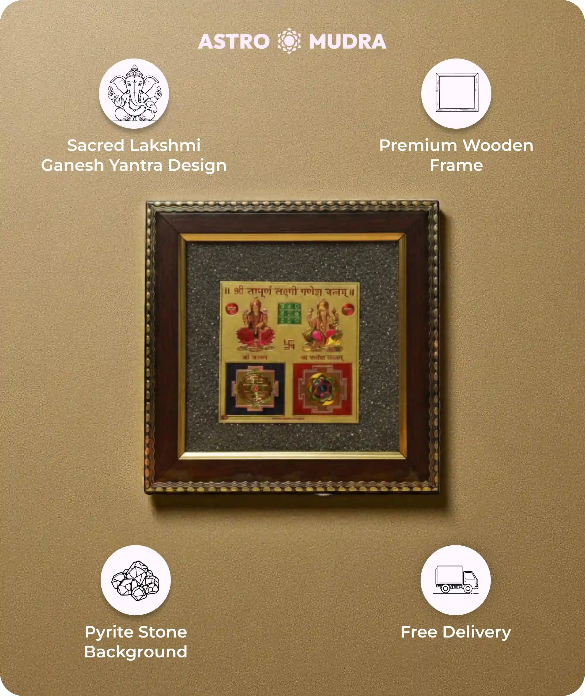 Features of Lakshmi Ganesh Yantra Pyrite Frame