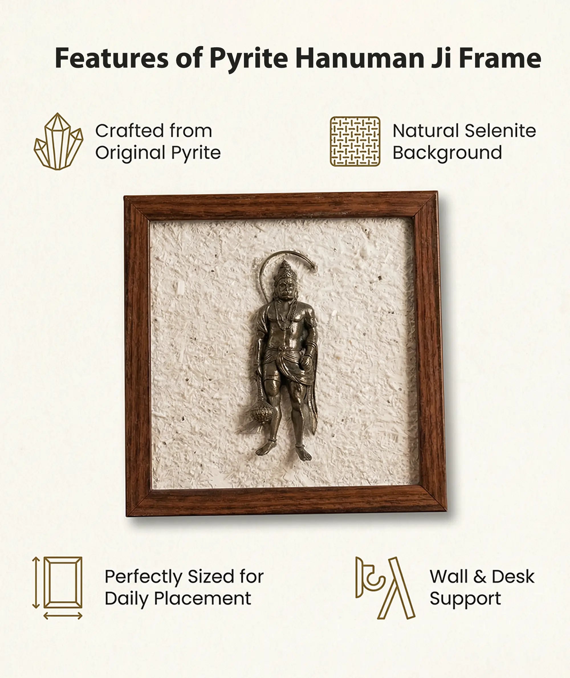 Features of Pyrite Hanuman Ji On Selenite Frame